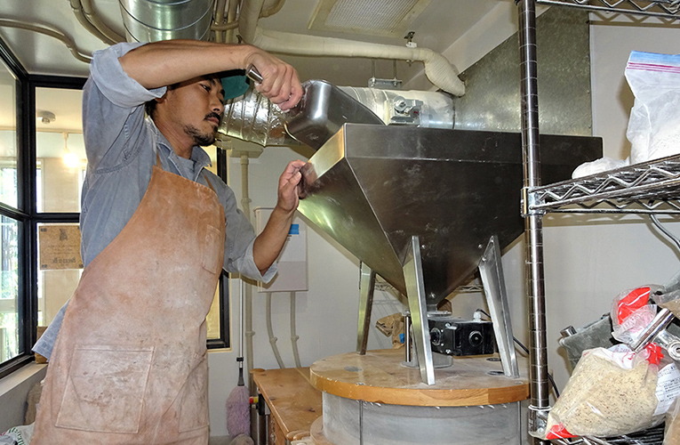 コンパクトだが、篩もあるから粉の粒度が調整できる。「麦の種類、粉の粒度を変えると何通りもできる」という。