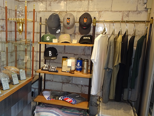 もともとデザインするのが好きという森田シェフ。店内にはロゴをデザインしたTシャツや帽子、エコバックが並んでいるが、これも森田シェフのデザインである。パンづくりの器材を活用したユニークな照明もそうだ。ここはまさに森田ワールドだ。とはいえ「収益はきちんと上げないと」と語る森田シェフの眼は自信に満ちていた。