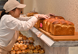 - お客様に「この食パンは何か違う」と思っていただけるように、他にはないもちもち感を目指し辿り着いたのが、この食パンでした。通常は10%くらいの湯種を、20%ほど使用してつくっています。また、食パンのサイズを通常よりも少しだけ小さめにすることでお客様の来店頻度を高める効果も得られていると思います。
