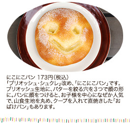シニアのお客様が多いこともあって、商品名も「ノアカレンズ」を「山ぶどうとくるみ」などどんなパンかわかりやすいネーミングに変えました。にこにこパンは、元は「ブリオッシュ・シュクレ」で出していました。バターを入れる穴を顔の形にしたら、子どもたちが「ニコニコのパン」と喜ぶので、商品名に採用! パンもお店も、私1人ではなくて、お客様やスタッフ、家族、みんなに育ててもらっています。
