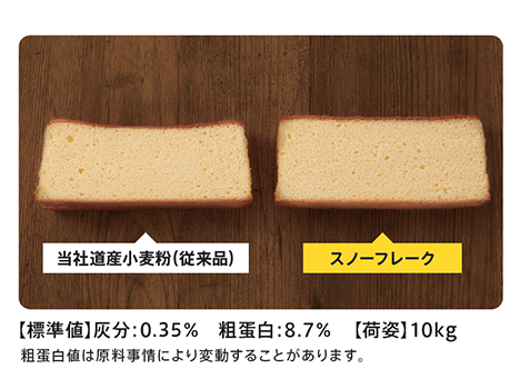 「スノーフレーク」を使用したスポンジケーキは、ボリューム感と張りがあり、ふんわり軽く、きめが細かい仕上がりになります。