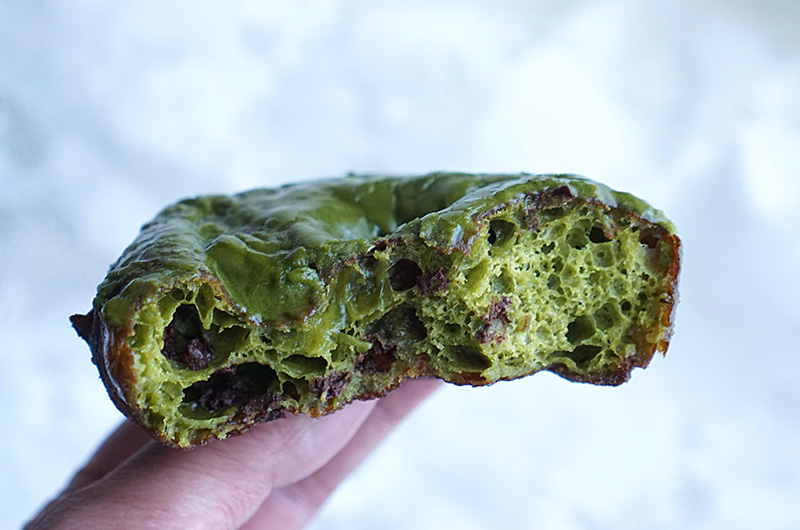 シンプルなラインナップの中、数種類ですが異彩を放つ派手なグレースやチョコがかかったドーナツが存在します。その中でオススメなのが、抹茶とチョコのドーナツです。