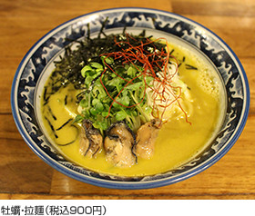 看板メニューの「牡蠣・拉麺」以外にも、「牡蠣・つけ麺」や「牡蠣めし」、さらには「生牡蠣」まで提供。牡蠣の旨味をさまざまな角度から味わえます。