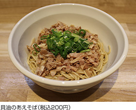 「貝にこだわった店、というのはラーメン業界でもまだまだ珍しいと思い、このスタイルに辿りつきました。以前はあさりとしじみを中心にさまざまな貝の味を取り入れた『貝だしラーメン』を提供していましたが、研究を重ねた結果、現在は貝の中でも味と香りの強い牡蠣に特化したソバとつけ麺をご提供しています」