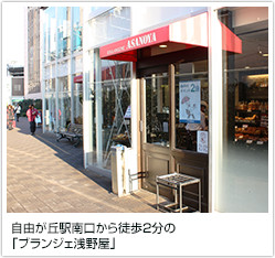 1933年千代田区麹町で創業、現在は軽井沢に本店を置くベーカリー。自由が丘店は2006年10月オープンで、1Fのベーカリーでは本格的なヨーロッパスタイルのパンや菓子パン、サンドイッチなど常時80種類ほどが揃っています。2Fには22席のイートインコーナーを併設。大きな窓から東急線の電車を眺めることができ、小さなお子様連れのお客様にも好評です。