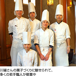 戦後間もない頃、和菓子職人としてスタートした川端さん。洋菓子と出会ってからは洋菓子職人になり、関西に生クリームのケーキをいち早く広めたことでも知られています。その後、フランス菓子をつくり続け、大手調理師学校の講師も兼務するなど、日本の洋菓子界を牽引。和の食材である和三盆を使った洋菓子を広めるなど、既成概念にとられない素材使いや新素材の導入など、パイオニア的存在でもあります。