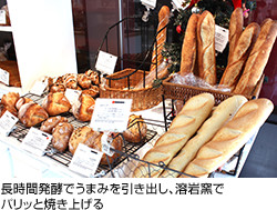 同店のパンは、パンの種類や季節によって複数の酵母を使い分け、長時間発酵でじっくりと小麦粉のうまみや甘みを引き出し、溶岩窯で焼き上げています。バターは北海道産のよつ葉バターをメインに使用。味わい、コスト、安定的に手に入るなど平均点が高く、パンづくりには最も適しているそう。