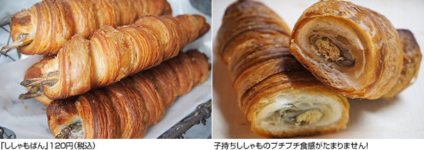 合わせるパンは、塩味を引き立たせたいということで、サクサクのクロワッサンを採用。子持ちのししゃもを使うことで、魚卵の味わいとプチプチとした食感をアクセントに活かしました。しかし「最初は生のししゃもをそのまま生地に巻いて、オーブンで焼いていたので、生臭くて・・・。そこで、臭みを消すためにししゃもを塩でしめて、半焼きにしたものを生地に巻いてみました。それからオーブンで8分目まで焼くと、ちょうどいい状態になったんです」(中井さん)。