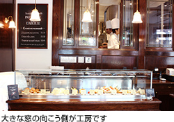 生ケーキが並ぶ冷蔵ケース、人気商品の「ショーソン オ ポム」や「フィナンシェ」など本日の焼きたてが並ぶカウンター、各種焼き菓子など、店内を一見したところでは一般的なパティスリーとそう大きく変わるところはありません。
