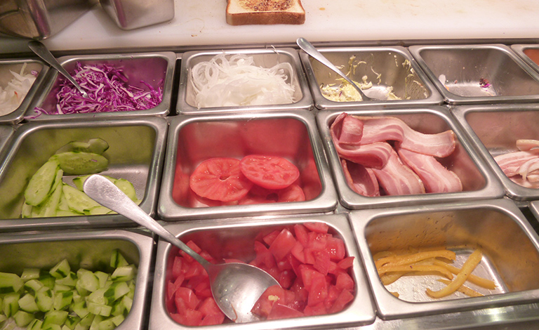 サンドイッチには欠かせない、色鮮やかな野菜とデリカテッセン。どの店でも野菜は産地にこだわり、フレッシュなものを厳選。デリカテッセンは可能な限り手づくりして、出来たてのサンドイッチを提供しておられました。各店自慢のカラフルでインパクトのあるサンドイッチ。皆さまのお店でも、お客さまの記憶に残るサンドイッチを開発してみませんか。