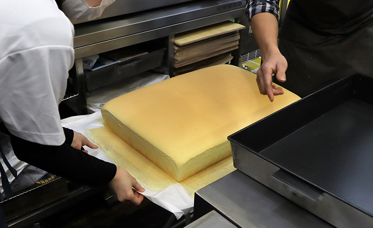 「プレーンの新カステラの賞味期間は焼いた日を含めて3日間ですが、3日目でも、この食感は保たれますし、ふくらみもキープします。むしろ時間がたつほどに、生地が落ち着いて、当日より2日目、そして、3日目がいちばんおいしくなるんです」(ミさん)。