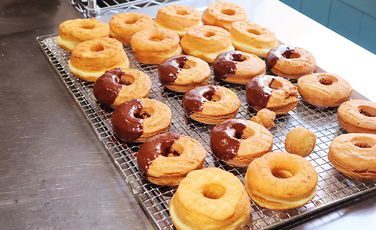 「揚げたドーナツは、どうしても時間がたつと酸化が起こりがちなので、現在は焼きとスチームを中心にしています。今後は、店内で揚げたてのドーナツを召しあがっていただくことにも取り組んでいきたいと思っています」(冨岡さん)。