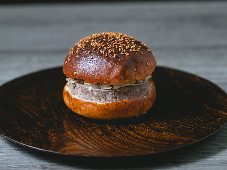 このほか、鴨肉に少しレバーも加えた鴨のテリーヌを全粒粉のバンズにはさんだ「パテドカンパーニュのバーガー」も人気のメニューです。こちらは、ジビエではない鴨肉を使用しています。