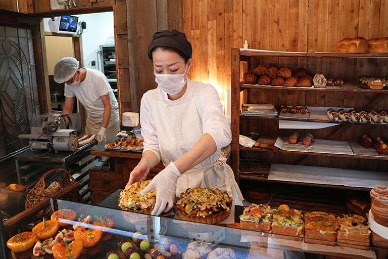「レストランがやっているパン屋がここにあることを、まずは地域の方々に知っていただき、パンをめぐってお客様といろいろな会話を広げていきたいです。惣菜パンもヴィエノワズリーも、おいしさのためには妥協せずによい素材を選び、私たちが持っている技術を駆使して、自信をもっておすすめできるものを提供しています。そうした、つくり手のこだわりや想いも丁寧にお伝えするように心がけています。パンがおいしいから、今度はレストランにも行ってみたいと思っていただける、日常から非日常への窓口になれたら、と考えています」(橋本さん)。