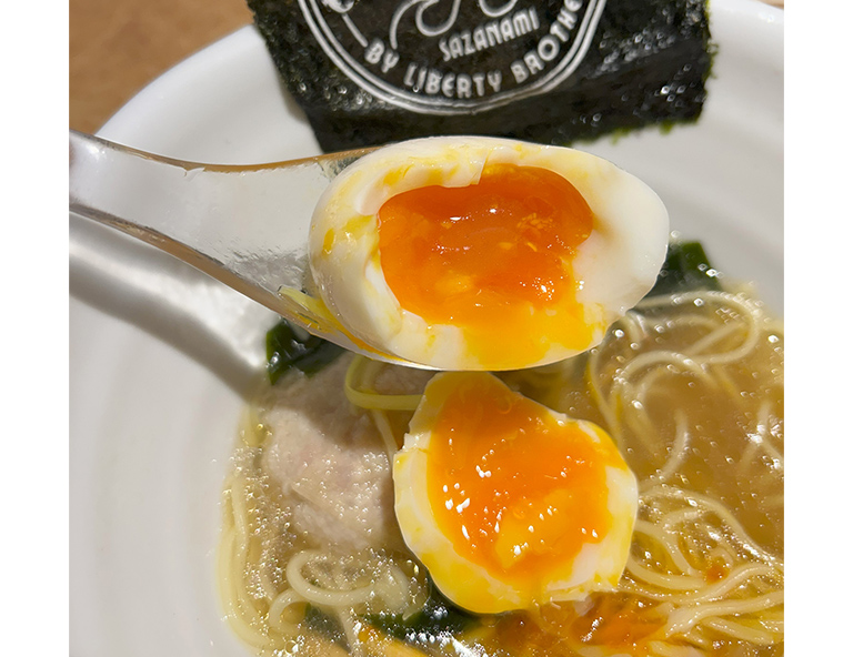 麵匠 さざ波」のいちおしは、「澄み渡る“極”塩らぁめん」。蒲田にある深夜から朝にかけて食べられる他店のラーメンは「とんこつ」と「つけめん」のため、差別化のためにさっぱりとした「塩」にしたのだそう。また、塩ラーメンはシンプルで誤魔化しが効かないため「今まで色々なジャンルのお店で修行をさせてもらったからこそ、あえて塩ラーメンを看板商品にしてチャレンジしようと思いました」と、小林さんは語ります。