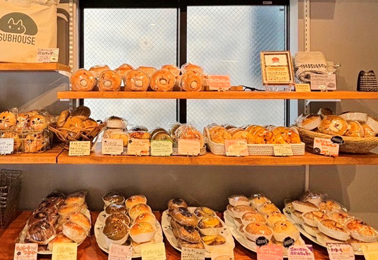 週末をメインに週2~3日営業するベーグルと焼菓子の店。プレーンや巻き込み系のベーグルが約20種、サンドは約10種揃い、店内でイートインもできます。