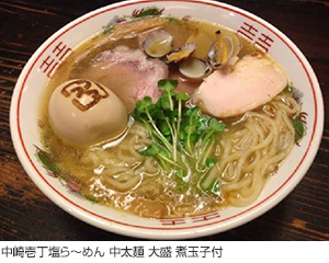 関西のグルメ番組でもしばしば取り上げられている同店のラーメン。なかでも、一番の看板商品といえば、店主がイタリアンで働いていた経験が生かされたという「中崎壱丁塩ら~めん」です。イタリアンのパスタのような洋風のテイストが魅力で、これを目当てに訪れる女性客も多いとか。
