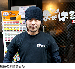 店長の寿崎豊さんは、台湾まぜそばの本場・名古屋で屈指の人気店である「らーめん まぜそば てっぺん」出身。同店で数年に渡って経験を積んだ後、「一度食べたら病み付きになるこの味を、東京で挑戦したい」と、あえて土地勘もない東京・浅草橋の地で麺屋まぜはるを開店しました。
