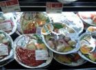 また食パンコーナーではダイエーのPBであるセービング一斤105円の食パンが大量陳列されていたが、それよりも目を引くのは、3枚入りのバラエティ食パンである。特にライ麦入り、穀物入りなどのヘルシー志向のパンが目につき、ここでも小人数家族向けの品揃えの充実がみられる。