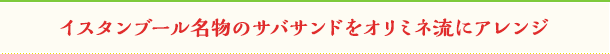 サバサンドはイスタンブール名物のB級グルメ。港町の屋台で、フランスパンに鉄板で焼いたサバと玉ねぎスライスをはさみ、塩とレモンで味つけしたサンドイッチです。同店スタッフがトルコ旅行で出会ったサバサンドをベースにして、ぜひオープン時のメニューに加えようと、試行錯誤を重ねたそう。「パン生地は4種類くらいを試し、香辛料や味つけもいろいろ変えて試作を繰り返しました。最終的にたどりついたのが、サバとパンがいちばんしっくりマッチする、チャバタ生地と塩味のごくシンプルなレシピです」とスタッフの藤井さん。