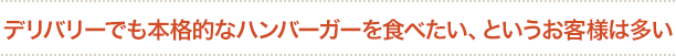 「当店のお客様は女性客の方が多いですね。本店は6対4で女性。駅前のルミネ店は8割以上が女性客です。また、デリバリー店も主婦層からの支持を多くいただいています。やっぱりお子さんが小さいとなかなか外食は難しい。でも本格的なハンバーガーを食べたい、という方が多いのではないでしょうか」