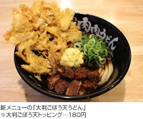 この他、一番人気の『肉ごぼう天うどん』を改良した「大判ごぼう天うどん」を11月末から提供スタート。ごぼうを丸々揚げる従来のスタイルも残しつつ、かき揚げタイプを加えることで、食べやすさを訴求しています。さらに、この秋からは全店でうどんの太さを従来よりも太いものに変更。よりコシや喉ごしが楽しめるように、という狙いがあるといいます。