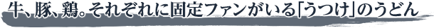 「看板メニューは牛肉のつけうどんですが、豚肉、鶏肉にもそれぞれ固定のファンがいらっしゃいます」。