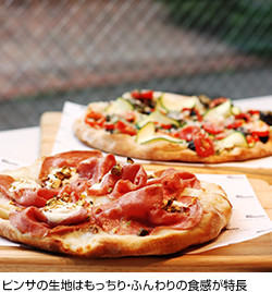「お客様に、どんな具材がどのくらいのっているのか実物を見て確かめてオーダーしていただける『見せて売る』スタイルにしています。具材は、野菜やフルーツはフレッシュな国内産のものを使っていますが、チーズやハム類はイタリアから。また、素材をバランスよく組み合わせ、素材そのものの味でおいしく召し上がっていただけるように、味つけはごくシンプルに。焼く前に塩、ブラックペッパー、オリーブオイルを振る程度です」(久松さん)