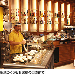 窯とともにミラノのSPONTINIから若い職人を招き、現地で2カ月間修業した日本人の店長とともに生地の仕込みから焼き上げまで、現地と同じボリュームとおいしさを再現しています。