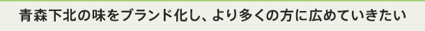 「将来的には、現地の特産物を紹介したり、メニューに加えたりすることでお客様に喜んでいただきたいと思っています。その結果として、地元・下北への貢献ができれば嬉しいですね」。
