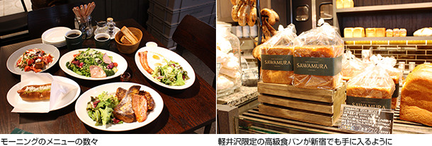 軽井沢に本店を構えるベーカリー・レストランが新宿エリアに初出店。パンに合う欧風料理のレストランは、早朝から深夜まで、さまざまなシーンで利用できます。例えば、朝7時からいただけるモーニングメニューは、いずれもボリューム満点。朝から野菜もたっぷりとってほしいという思いを込めているそう。